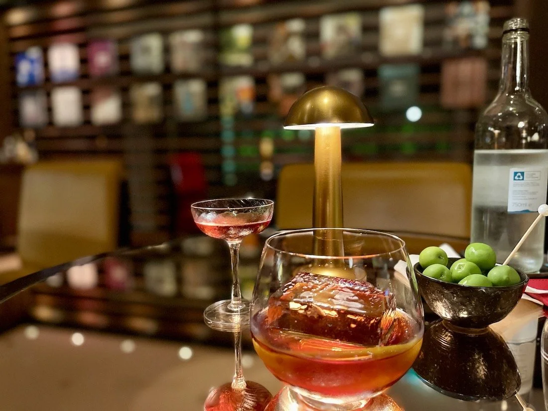 イタリア発祥の赤い色をしたクラシックカクテル「ネグローニ」は、バーのインテリアと似合う。音楽をかけ、大人の落ち着いたクラブのような雰囲気である。ロビーから階段を上った場所にある。