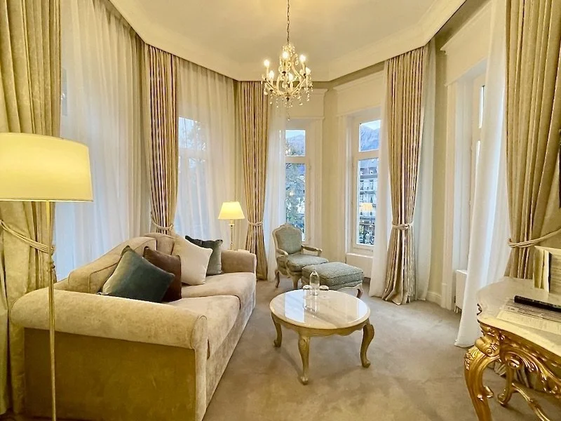 インターラーケンを代表する歴史的ホテルのひとつ、「グランドホテル・ボー・リバージュ」。19世紀から続く伝統を受け継ぎながら、上質な山岳リゾートの空気を纏ったホテルだ。ホテルは川沿いにあり、駅やバス停にアクセスしやすくて便利だ。