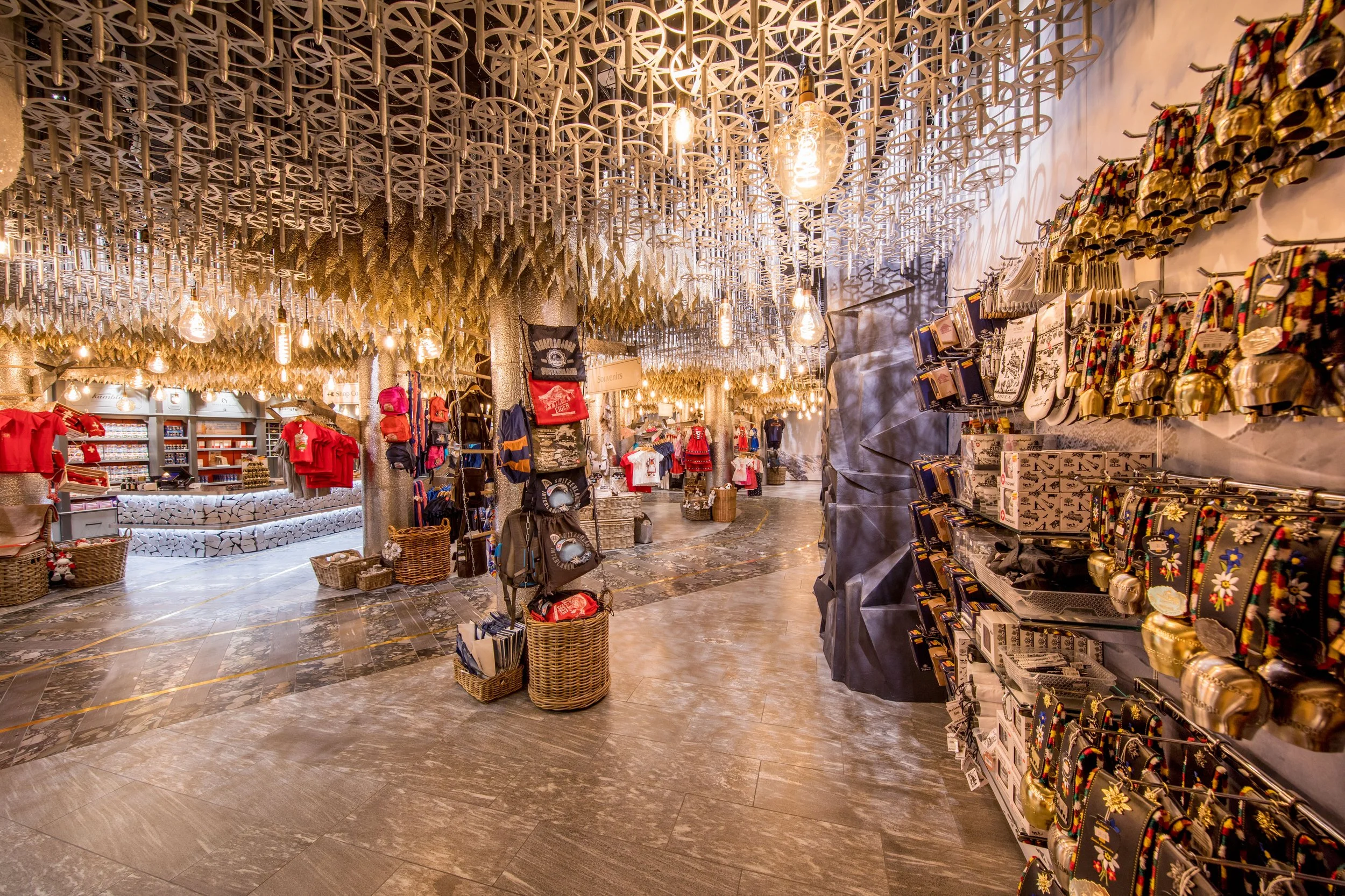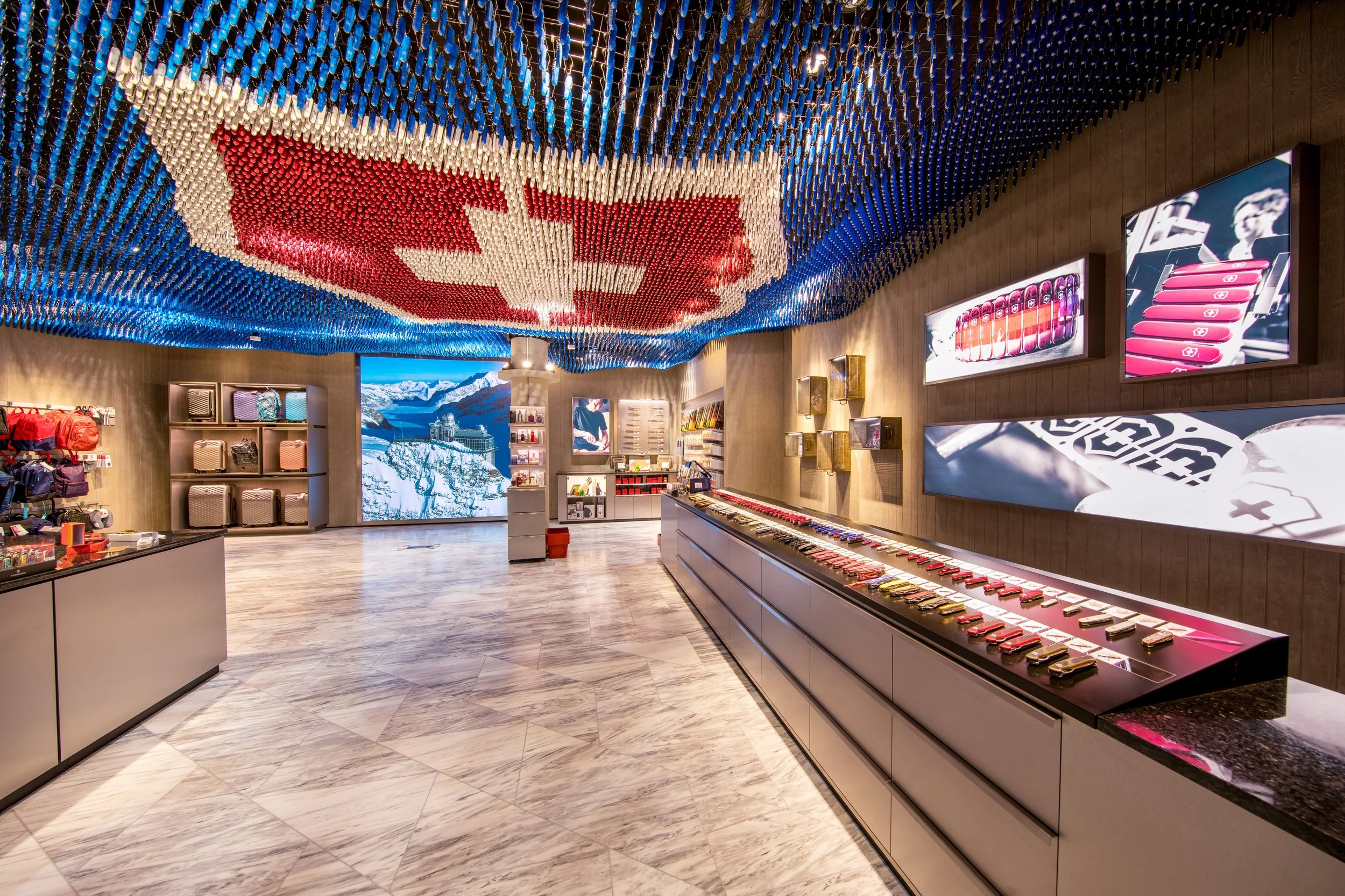 天井に3万本のスイスアーミーナイフがデコレーションされたVICTORINOX(ヴィクトリノックス)のショップ ©jungfrau.ch