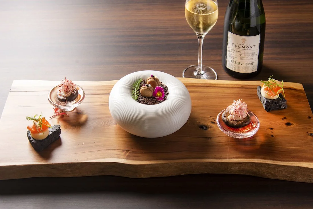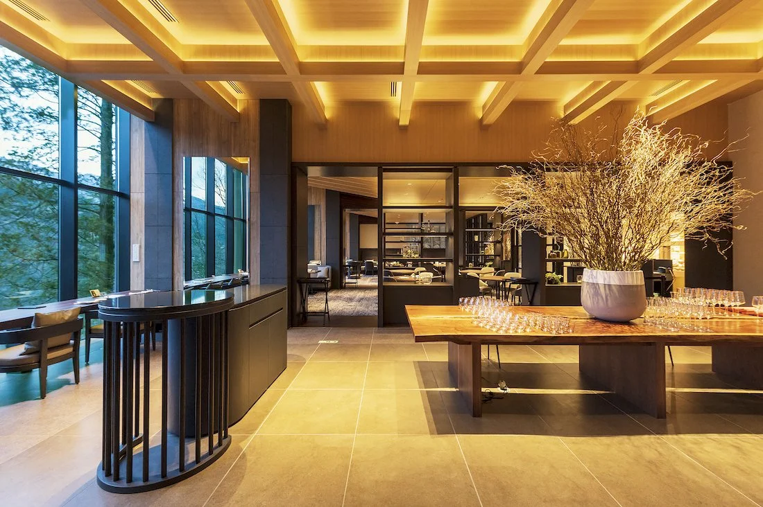 サステナブルをテーマに環境に配慮して、地元の提携農家から届いた食材を調理するレストラン「炅」(ケイ)では、フレンチをベースとした薪火(まきび)を使った料理がいただける。CO2 の排出削減を意識して、薪ほか、炭、藁の火を使った料理を提供する。シェフは、地元の栃木県・那須塩原の出身。伝統的なフレンチをベースにした、自然エネルギーを採り入れた「炎」の料理を創り出す。地産地消を目指し、シェフが自ら生産者のところに足を運んだ旬の食材を調理する。
