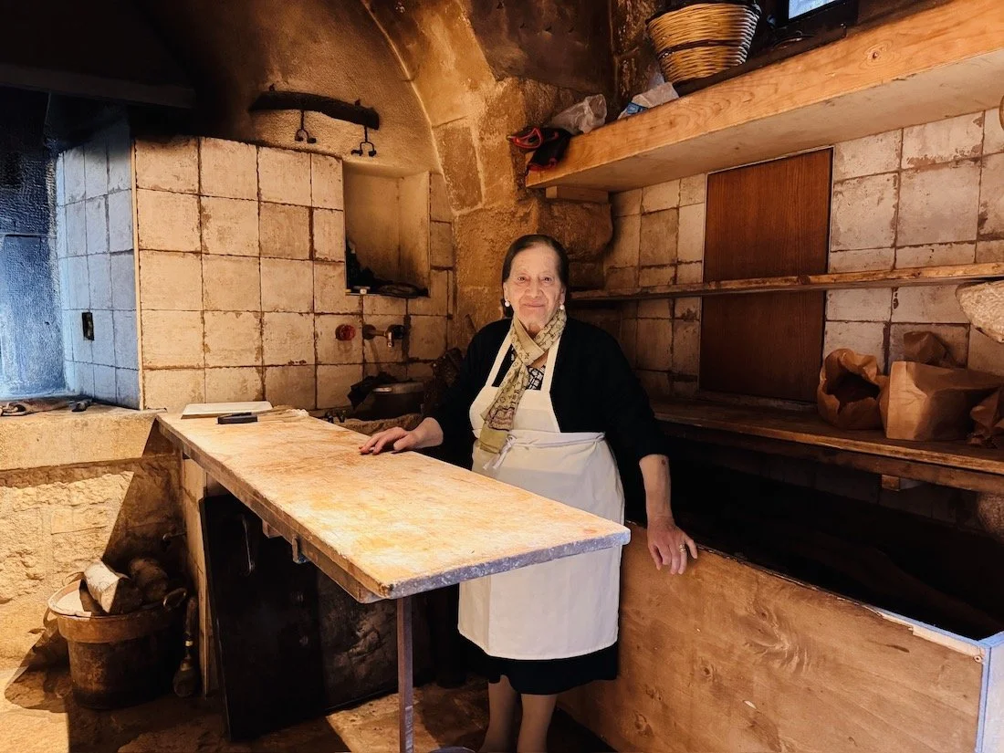 アルタムーラの街を有名にしたのは、パン。プーリアらしさを感じる老舗のパン屋、1391年創業の「Antico Forno Santa Caterina(サンタ・カテリーナ・ベーカリー)」は、見逃せないスポットだ。ここは中世まで遡る古い歴史を持ち、アルタムーラ最古の共同の窯として知られている。当時のコミュニティでは、焼き上がったら分かるように、自分の家のパンにイニシャルを刻印していたそうだ。現在も伝統の石窯でパンが焼かれ、店では街の有名人のシニョーラが微笑む。