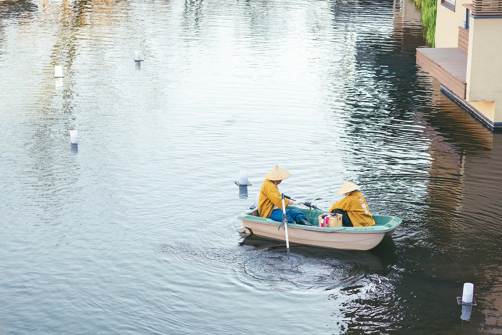 水行灯を灯しながら進む舟、日本の情緒を感じさせる風景