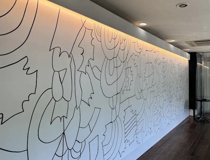 「クッキーのアトリエ」では、ここでしかできないアート体験も用意している。クッキーのアトリエで感じた色を、2階の巨大な線画に色を塗る「Paint Your Colors」(「ヘラルボニー」によるオリジナル作品のアート体験)だ。訪れた人がここで体感した思い思いの色を自由に塗ることにより、1つの色彩画が出来上がる。皆でつなぐ、ウォールアートだ。