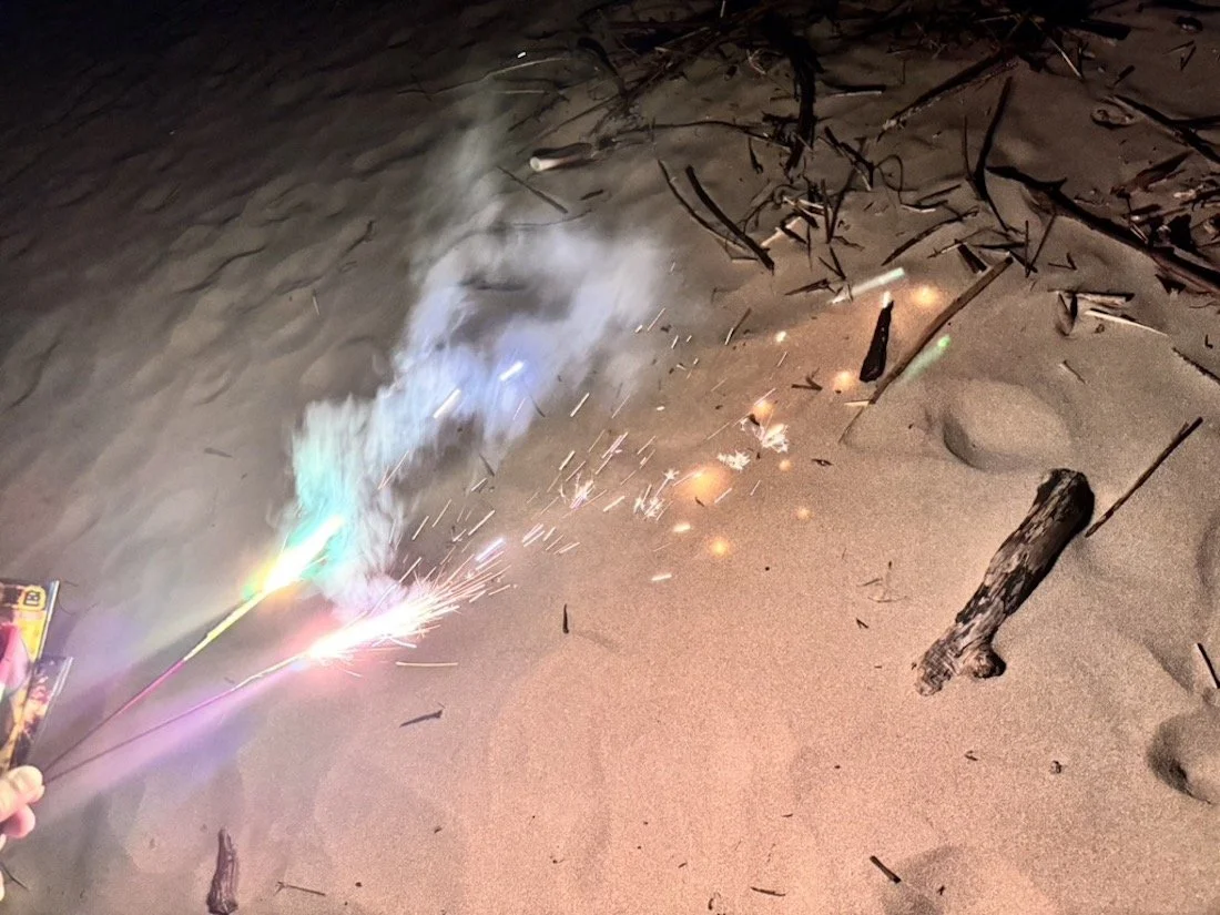 実際に砂浜で打ち上げられた、迫力満点の花火