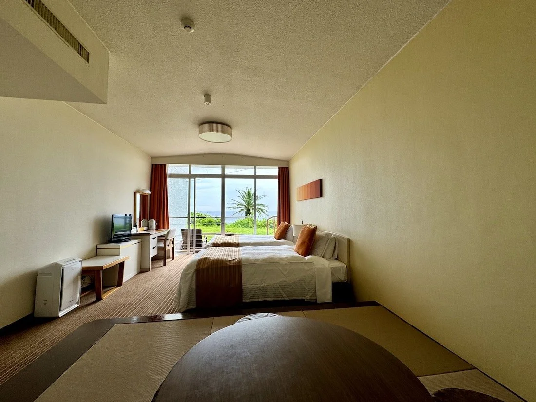 プールには、ファミリー向けにエアスライダーもあり、ナイトプールも開催。宿泊は、1階「屋外テラス」付の部屋ほか、全室が海を眺める向きで日差しが入り、広々としている。