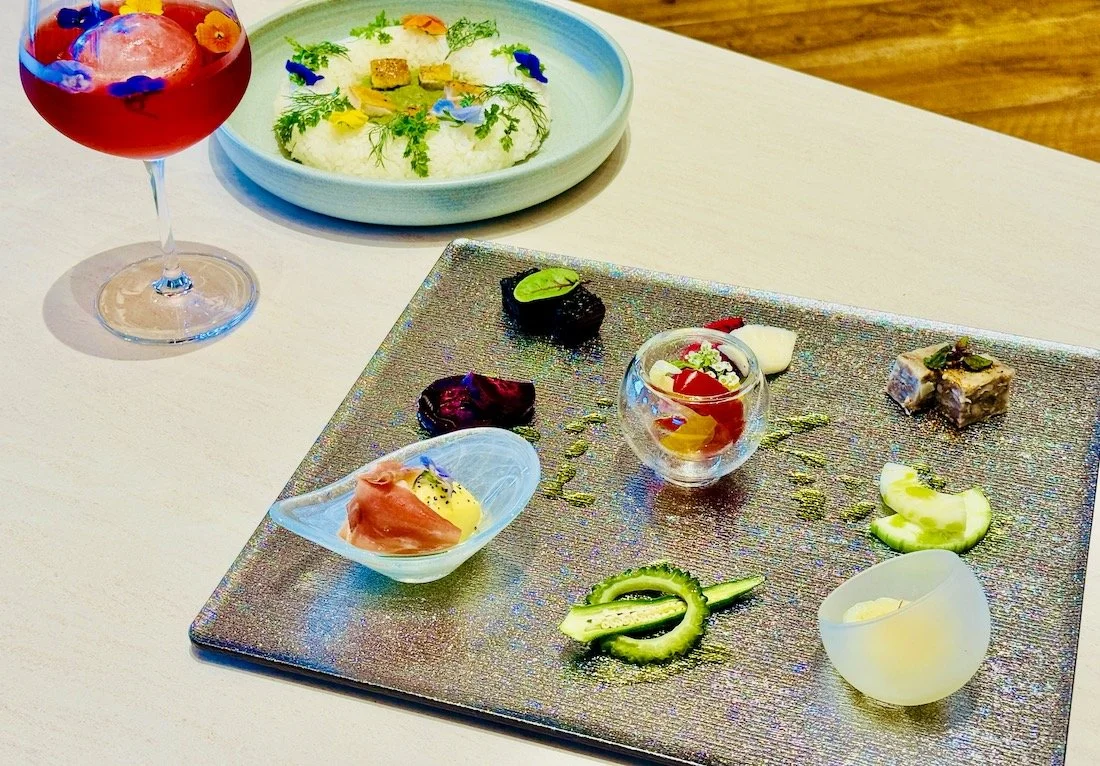 「TROPICAL OASIS(トロピカルオアシス)」の色鮮やかな五感を刺激する南国リゾートメニュー。写真は、沖縄の食材を楽しむタパスで、カクテルとともに。
