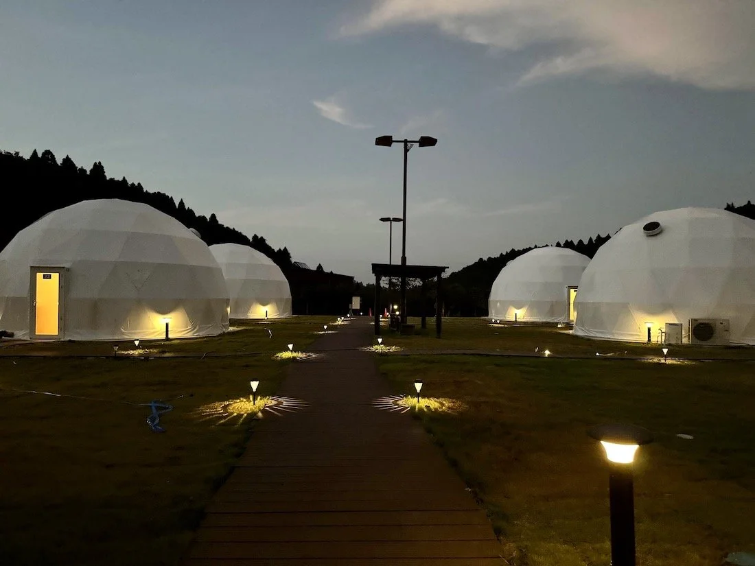 ペットが同伴できる、グランピング施設もある。プライベート感のあるBBQ用の屋外テラスや、天然芝のドッグラン、室内にはケージを備えている。大型ドームのグランピングテントで、愛犬、愛猫も一緒に、アウトドア体験ができる。