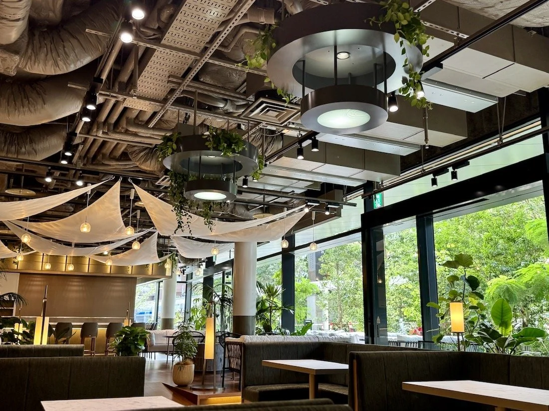 TOWER Sの2階 CANAL DINING HALL(キャナルダイニングホール)は、芝浦運河に面する水辺の開放感の中で素敵なひとときを過ごせるエリアで、SHIBAURA BREWINGのクラフトビールも味わえる。1階 GREEN DINING HALL(グリーンダイニングホール)は、安らぎを感じる緑に包まれた空間で、思い思いにゆったりと時間を過ごせる。さまざまな企画を開催するポップアップエリアもある。