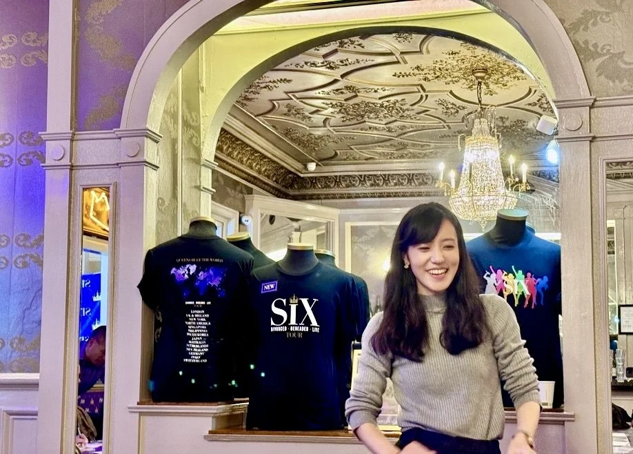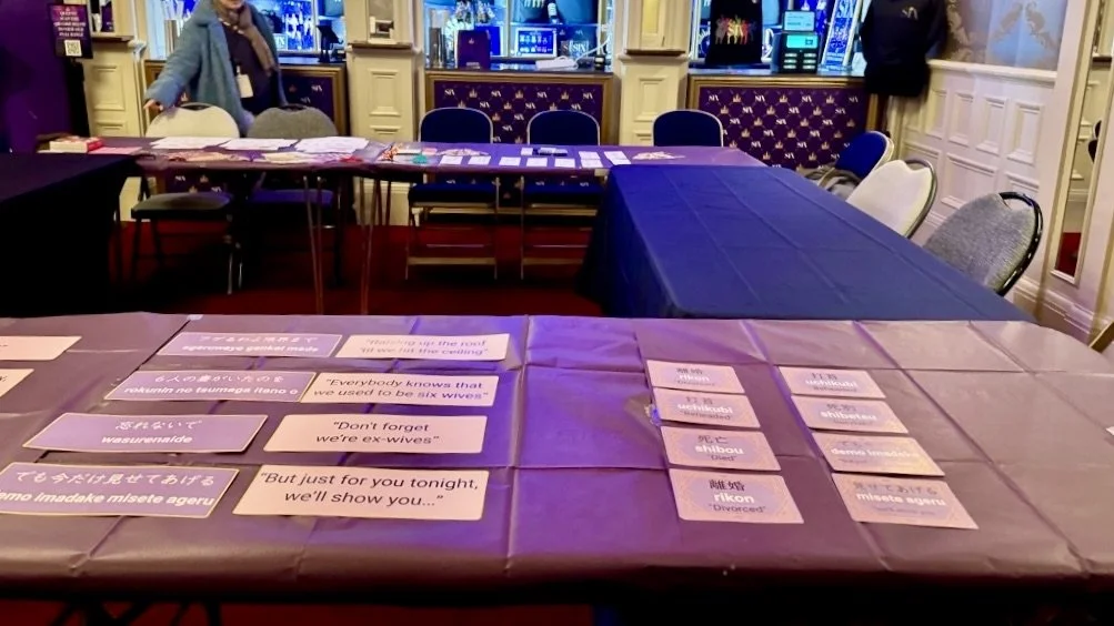 開催場所は、舞台と同じヴォードヴィル劇場の2階ドレスサークル(Dress Circle)バーエリア。10名超の参加者は、ほぼ現地英語圏。『SIX』の歌詞を通して日本語を学んだり、日本文化を体験したり、こちらも両国のコラボレーションを感じるレッスンだった。