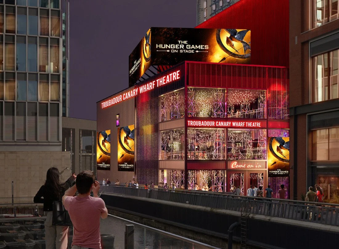 イギリス・ロンドンの劇場「Troubadour Canary Wharf Theatre(トルバドール・カナリー・ワーフ・シアター)」は、ウォーターフロントのカナリー・ワーフに誕生した1,200席の最新鋭劇場で、舞台『THE HUNGER GAMES: ON STAGE』のために新設された。プレビュー公演は2025年10月から始まり、11月のオープニングナイト(Opening Night: Wed, 12 Nov 2025)を経て、現在も本公演が上演中である。原作はスザンヌ・コリンズによるベストセラー小説『The Hunger Games』、全世界で成功を収めた同名映画を基にした初の舞台化として、ワールドプレミアは大きな注目を集めた。