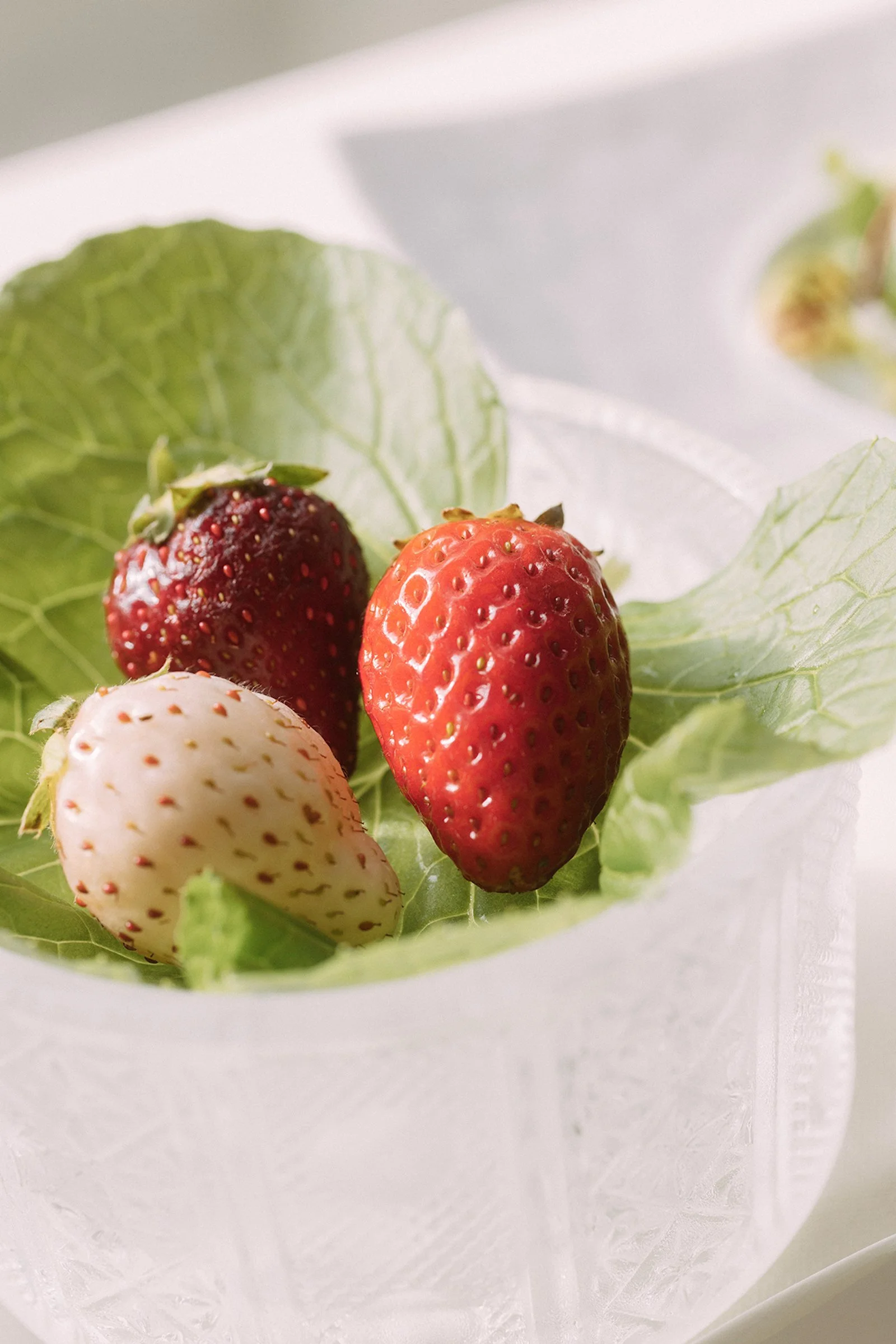 もう一つの朝の楽しみが、いちご尽くしの特別な「軽井沢いちごモーニング」。3種のいちごを使い分けたコースで、それぞれの個性を味わえる。甘みが凝縮した赤いちご、すっきりとした甘みの白いちご、濃厚で上品な味わいの黒(真紅)いちご。同じ“いちご”でも、香りや食感、味わいが違う。豆乳と水のみで作るいちごの無糖スムージー、3種のいちごの寒天寄せ、いちごと春野菜のサラダ、いちごのフルーツサンド、3種いちごのケチャップを添えたオムレツなどのメニューだ。